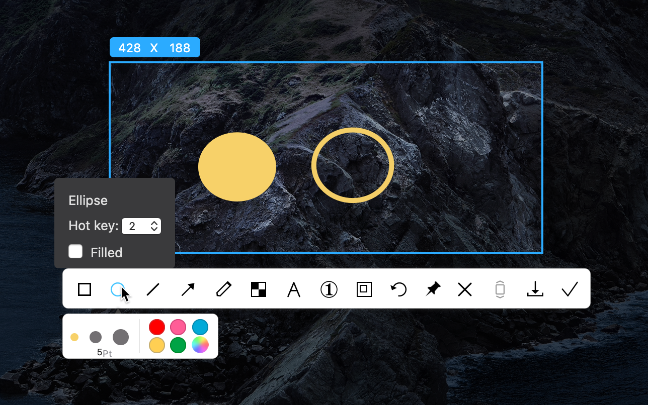 - 원형 하이라이트: Ellipse 체크
