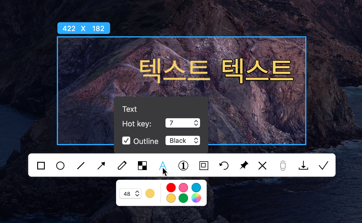 - Pin from pasteboard: "클립보드 이미지 고정" 단축키