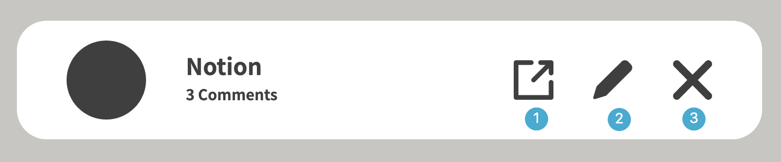 Create New Block 버튼 아래를 보면 방금 생성한 Comment Block이 보인다. 이 블록에 마우스 커서를 올려보면 옵션 아이콘들이 나타난다. ❶번 댓글창 새 탭에서 열기 ❷번 블록 수정 ❸번 블록 삭제