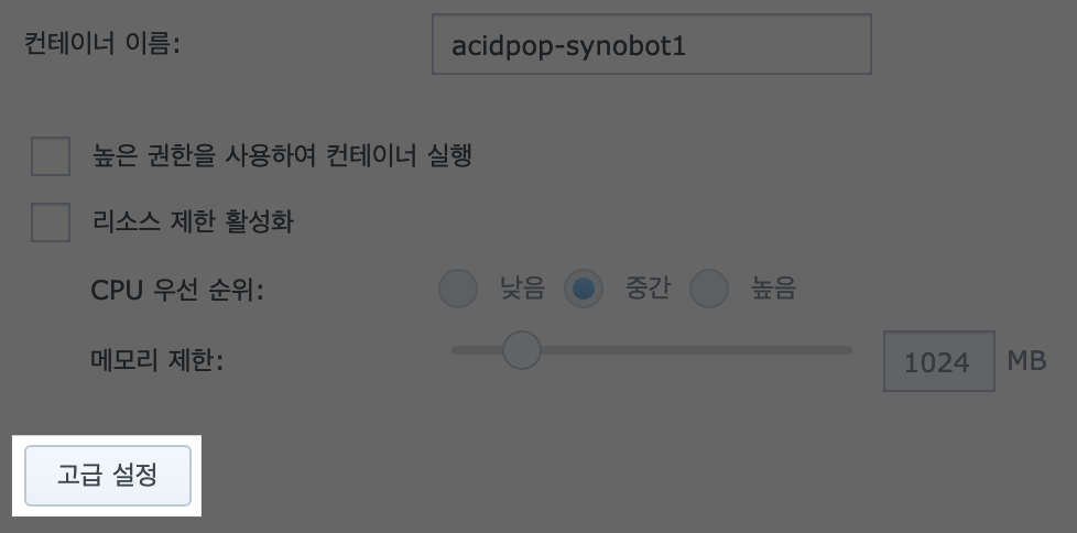 ➌ Synobot 이미지 실행 : Docker → 이미지 → acidpop/synobot:latest 더블클릭