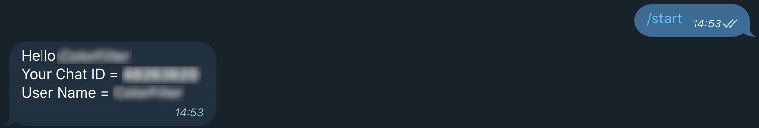 ➋ /start 클릭(혹은 입력) 후 수신한 메시지의 Chat ID 숫자 복사