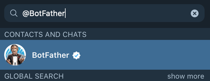 ➊ 텔레그램 검색창에 @BotFather 입력 후 클릭