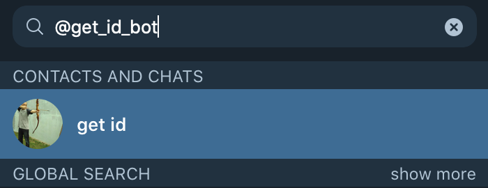 ➊ 텔레그램 검색창에 @get_id_bot 입력 후 클릭
