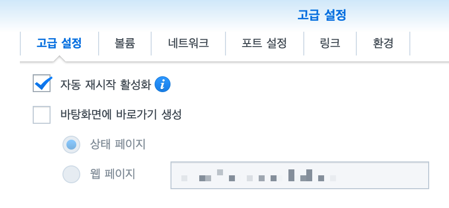 ➎ 고급 설정 탭 : 자동 재시작 활성화 체크