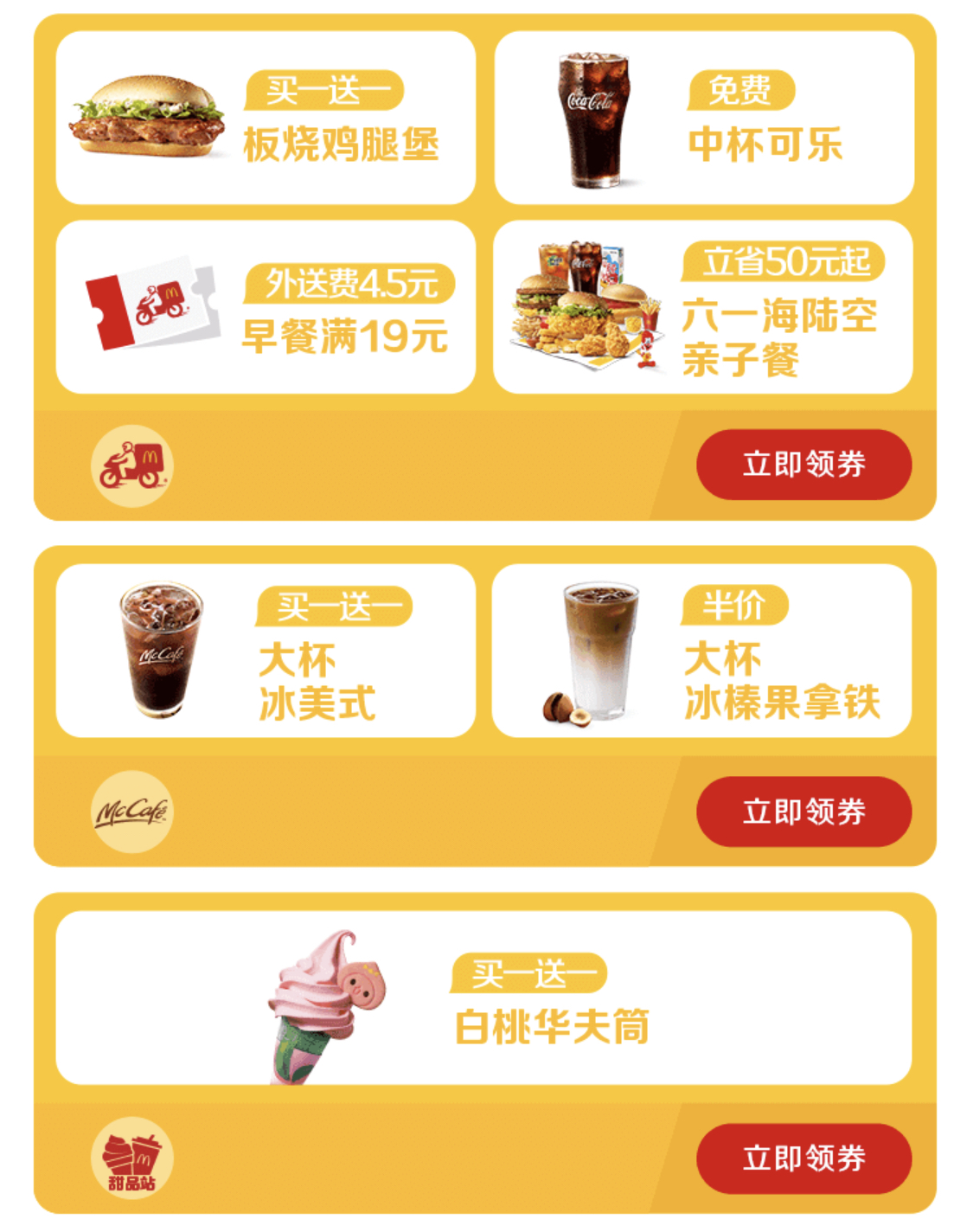 ๋งฅ๋๋๋๋ KFC์ ์์ฑ ๋ฏธ๋์ฑ(ๅพฎไฟกๅฐ็จๅบ)์ ๋ณด๋ฉด ๋ค์ํ ๋ฐ๊ฐ, 1+1 ์ด๋ฒคํธ๊ฐ ์๋ค. ๋ฏธ๋์ฑ์์ ํ ์ธ์ ์ ์ฉํด ์ฃผ๋ฌธํ ๋ค ์คํ๋ผ์ธ์์ ํฝ์ ํ๋ฉด ๋๋ค. ๋, ์ด๋ค์ ํ์ค๋ฐ์ค ๊ณต์๋ชฐ์์ ๊ฐ์ข ํ ์ธ์ฟ ํฐ์ ์ ๋ง ์ ๋ ดํ๊ฒ ๊ตฌ๋งคํ ์ ์๋ค.