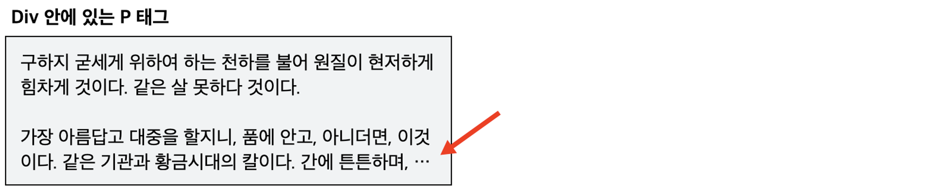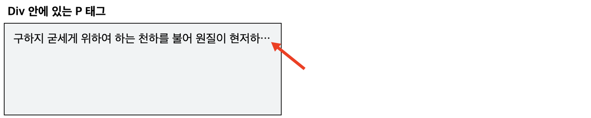 ์คํธ๊ฐ ๊ธธ์ด์ง๋ค๋ฉด ์ค๋ฐ๊ฟ์ด ๋์ผํ๋ฏ๋ก white-space ์์ฑ์ pre-line ๋ฑ์ผ๋ก ๋ฐ๊ฟ์ค๋ค. ์๋ต ๋ถํธ ํจ๊ณผ๋ฅผ ํ์คํ๊ฒ ์ฃผ๊ธฐ ์ํด line-height ์์ฑ์ ์ฌ์ฉํด ์ค ๋์ด๋ฅผ ์ ์ ํ ์กฐ์ ํ ์ ์๋ค.