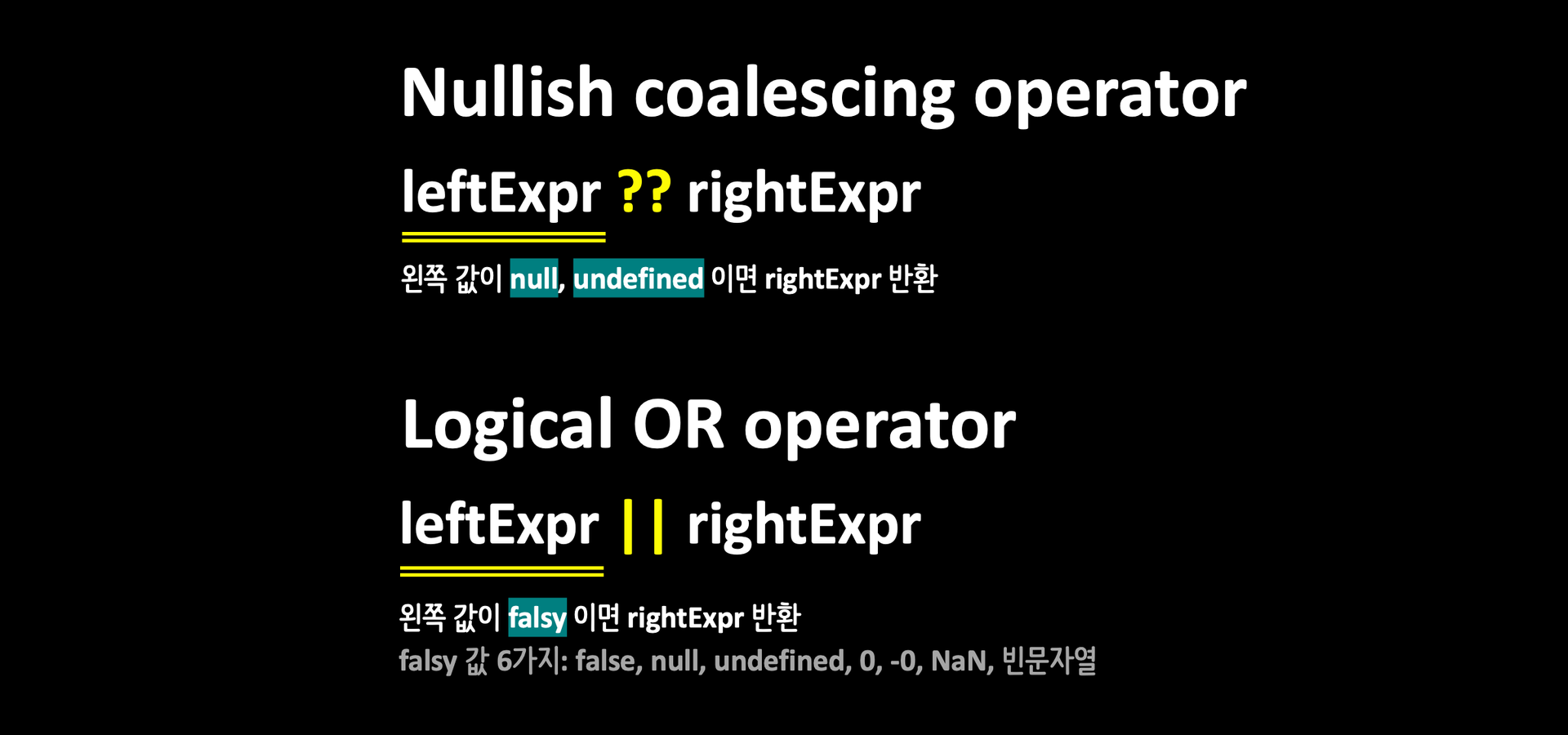Nullish coalescing operator (๋ ๋ณํฉ ์ฐ์ฐ์)