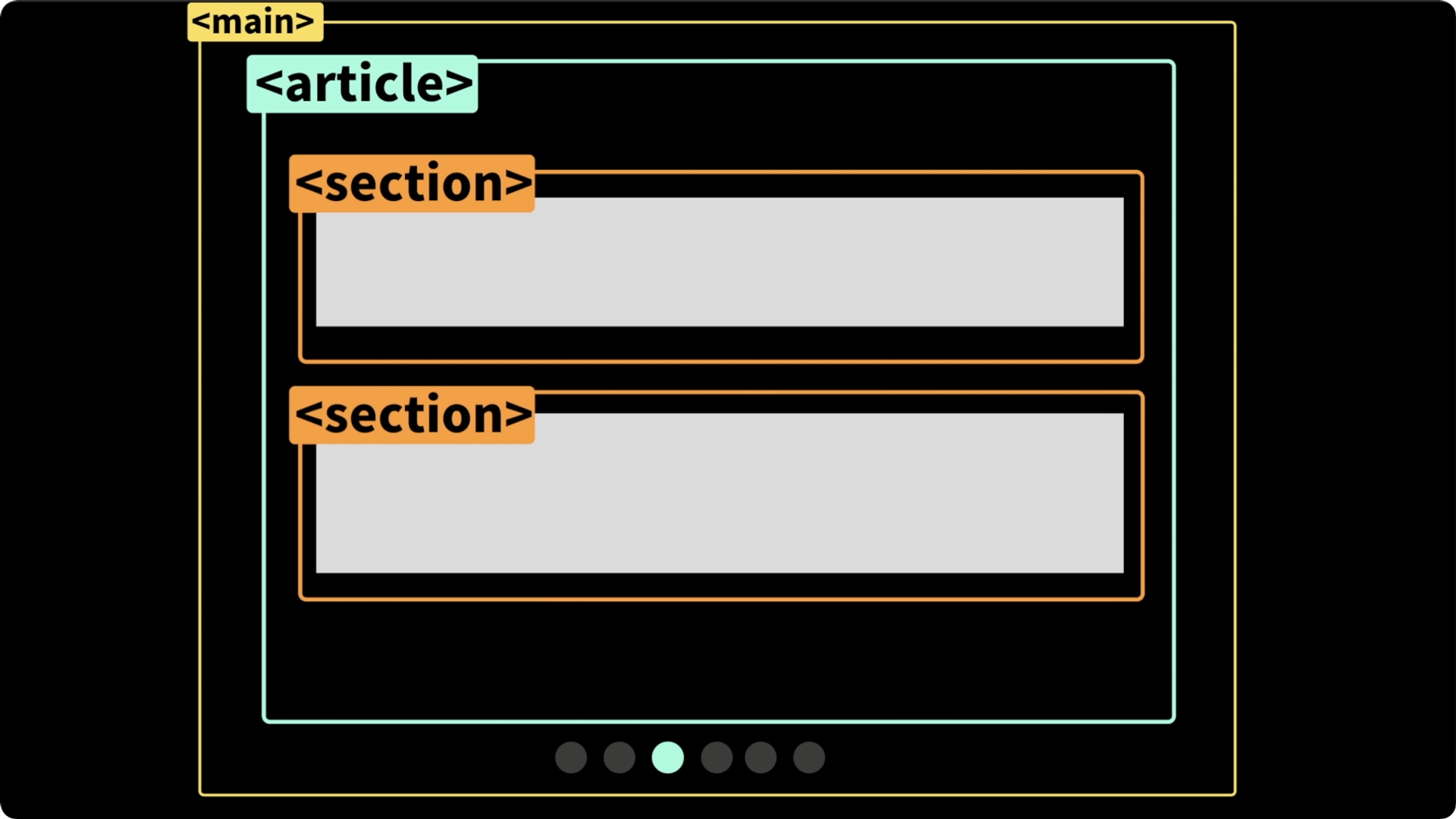 ์๋ก ์ฐ๊ด๋ ๋ด์ฉ์ ๋ฌถ๊ณ ์ถ์ ๋๋ <section>์ ์ฌ์ฉํ๋ค. <section> ํ๊ทธ๋ <article> ํ๊ทธ ๋ฟ๋ง ์๋๋ผ <main> ์์์ ์ฐ๊ด๋ ๋ด์ฉ์ ํ๋๋ก ๋ฌถ๋ ๋ฑ ์ด๋์๋ ์ฌ์ฉํ ์ ์๋ค.