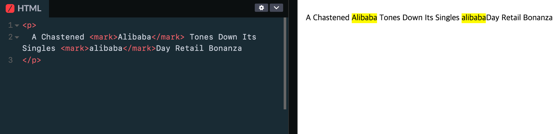 // ['A Chastened ', 'Alibaba', ' Tones Down Its Singles ', 'alibaba', 'Day Retail Bonanza']