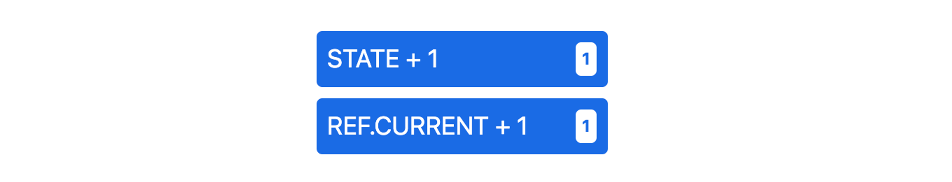 ์๋ 2๊ฐ ๋ฒํผ์ด ์๋ค. ์๋จ ๋ฒํผ์ ํด๋ฆญํ ๋๋ง๋ค useState๋ก ์์ฑํ state ๊ฐ์ 1์ฉ ๋ํ๊ณ , ํ๋จ ๋ฒํผ๋ ref.current ๊ฐ์ 1์ฉ ๋ํ๋ค.
