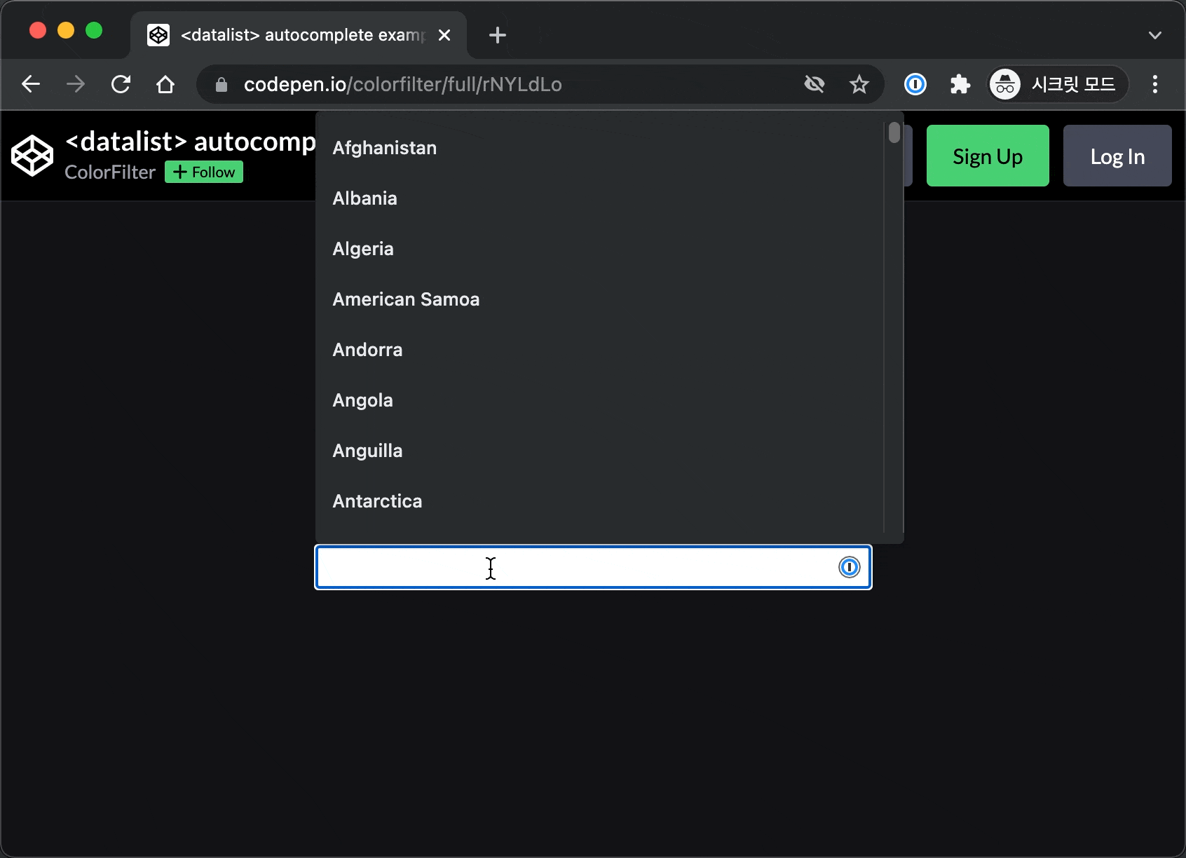 ๋ ฅํ ๊ฐ๊ณผ ๋น์ทํ ๊ฐ์ ๋๋กญ๋ค์ด์ผ๋ก ๋ณด์ฌ์ฃผ๋ ๊ธฐ๋ฅ์ด๋ค. <datalist> ํ๊ทธ๋ฅผ ์ฌ์ฉํด ์๋์์ฑ ๋ชฉ๋ก์ ์ ๊ณตํ๋ฏ๋ก ์ด ์์ฑ์ off๋ก ์ค์ ํ๋ค.