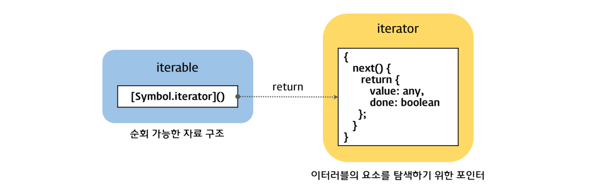 // โต Symbol.iterator๋ ์ดํฐ๋ ์ดํฐ ๊ฐ์ฒด๋ฅผ ๋ฐํํด์ผ ๋๋ค