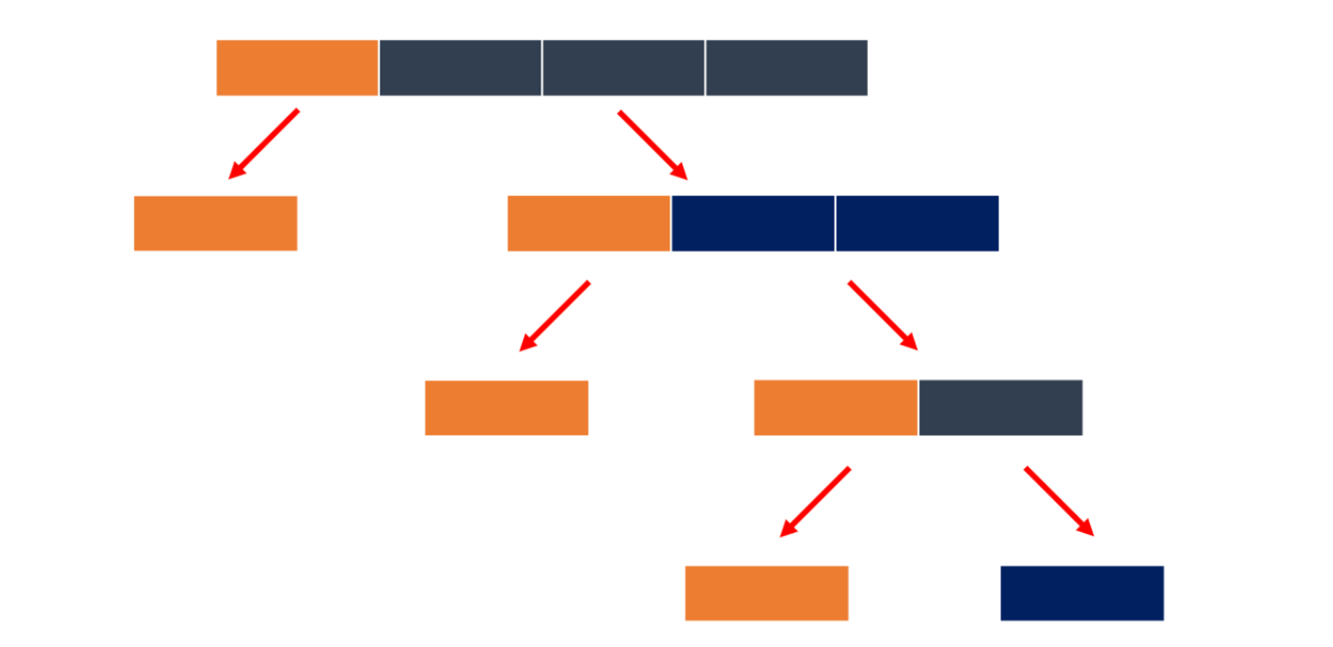 4 / 2 = 2→n / 4ํฌ๊ธฐ์ ๋ถ๋ถ ๋ฐฐ์ด 2์ ๋น๊ต (๋ถ๋ถ ๋ฐฐ์ด ๊ฐ์ 4๊ฐ)- (