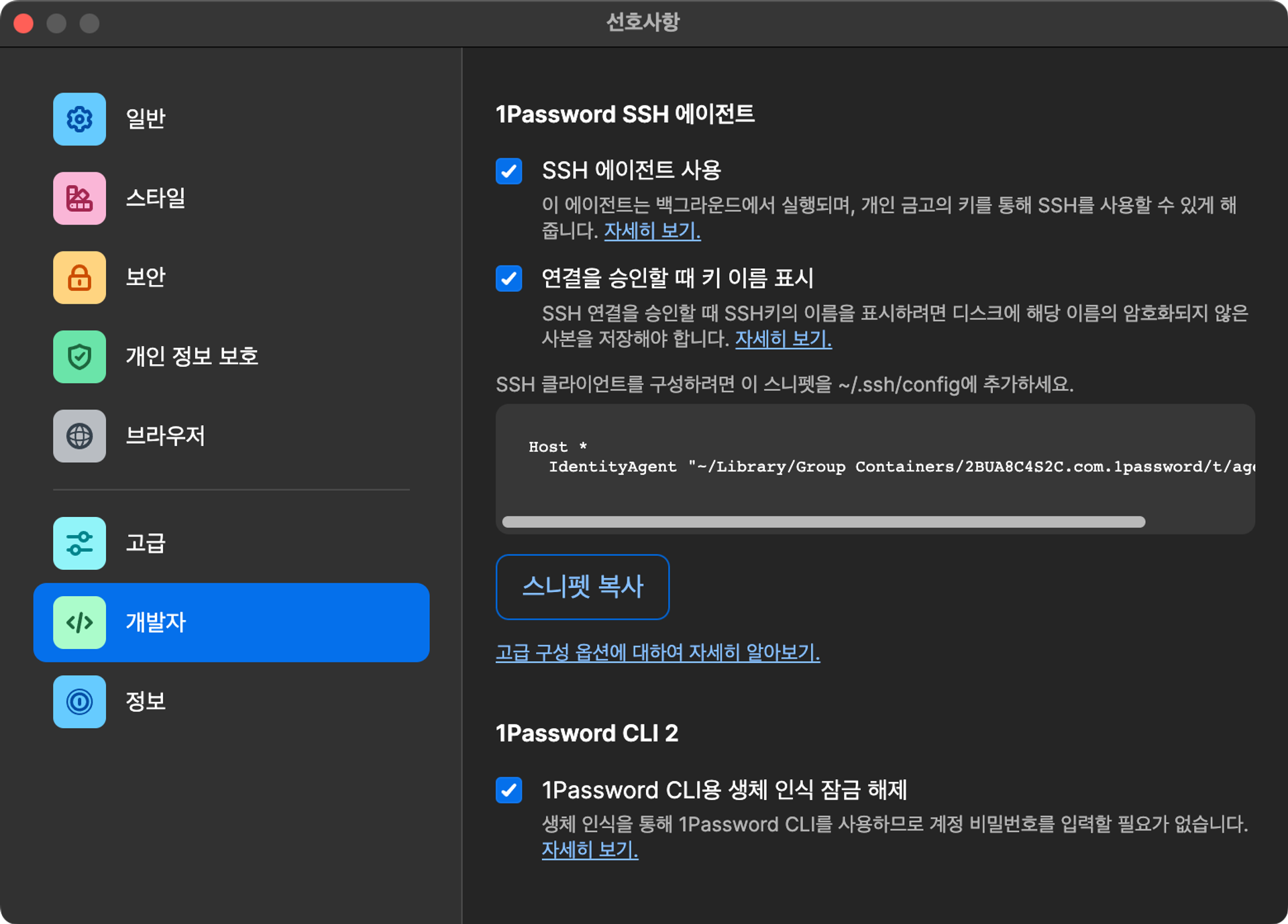 โถ 1Password SSH ์์ด์ ํธ ํ์ฑํ
