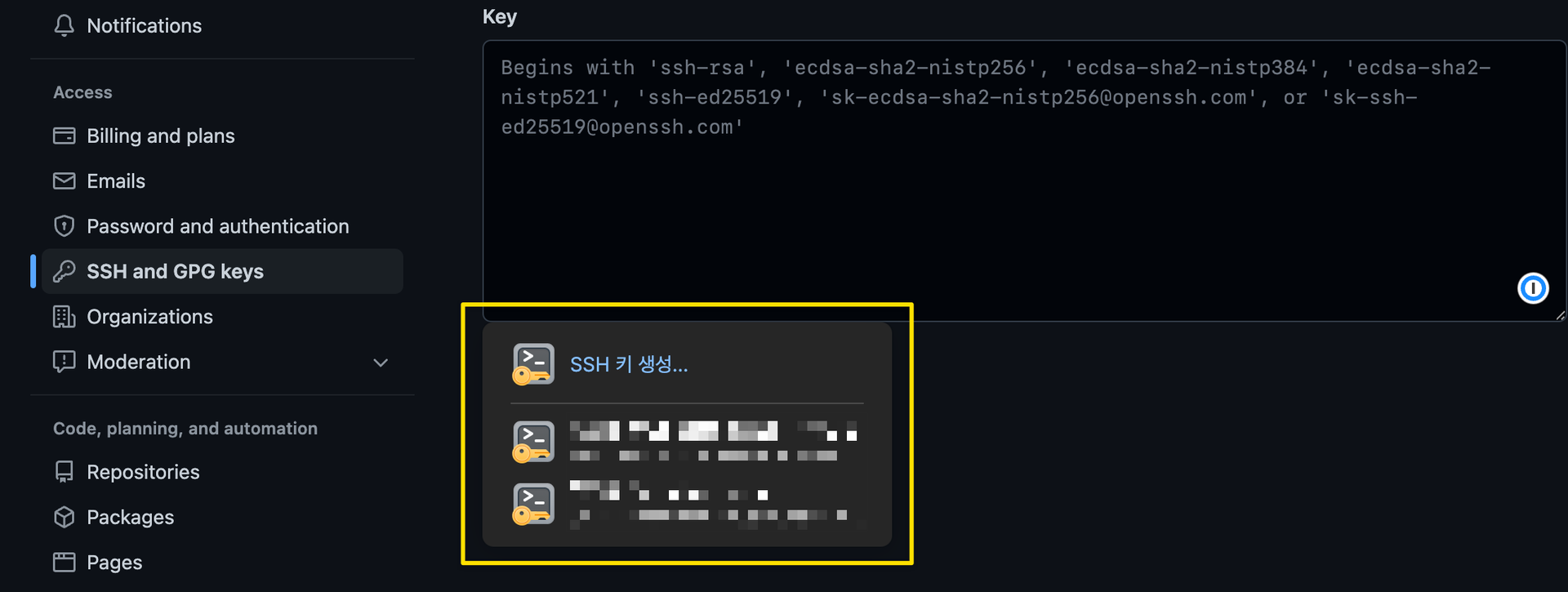 ๊ฐ์ SSH ํค๋ฅผ ์ฌ์ฉํ๋ ์์