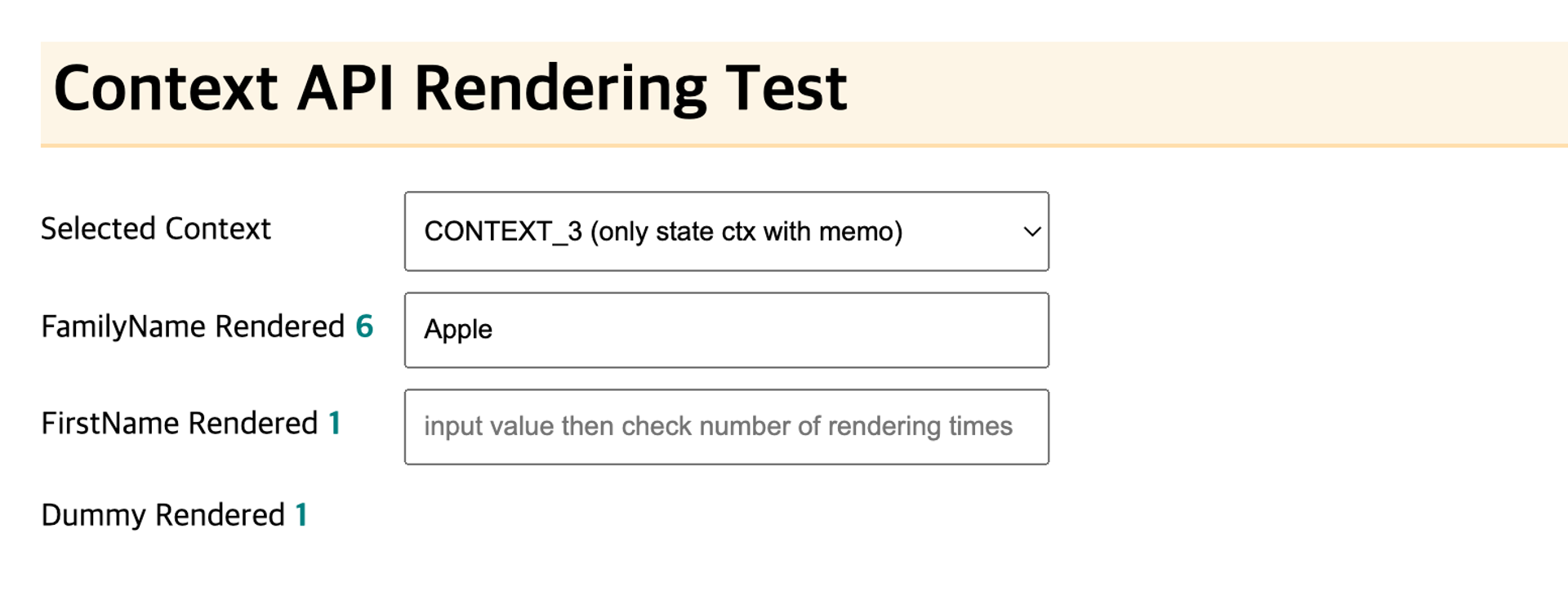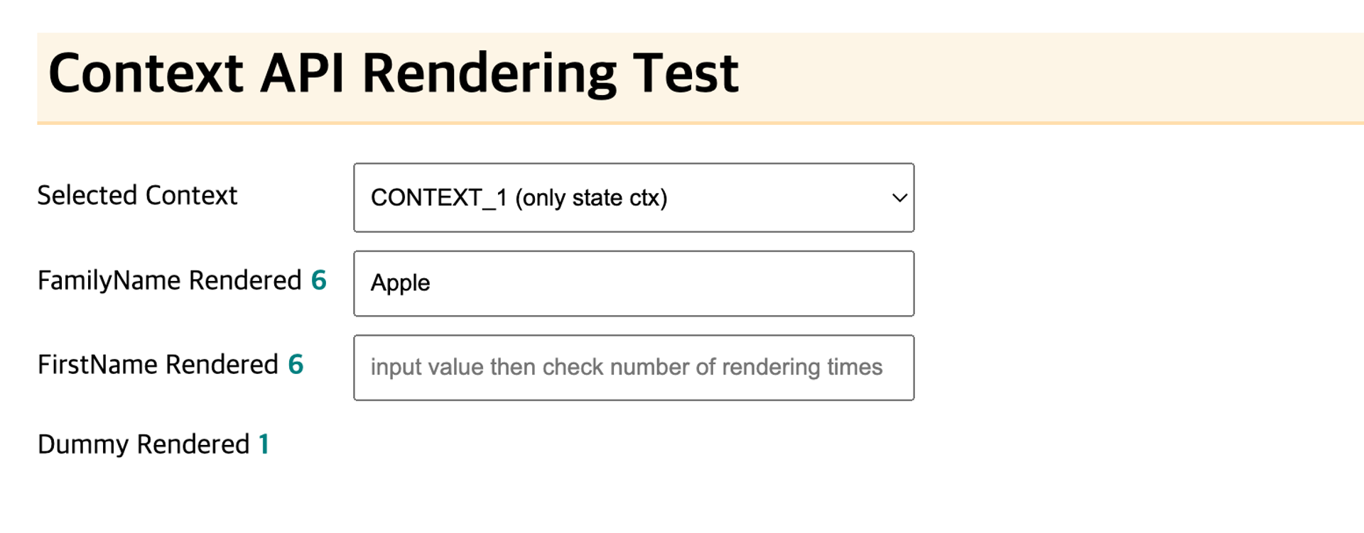 FamilyName, FirstName 2๊ฐ์ ์ปจํ ์คํธ๋ฅผ ๋ง๋ค์์ง๋ง, ๋ ์ค 1๊ฐ ์ปจํ ์คํธ์ ์ํ๊ฐ ๋ณ๊ฒฝ๋๋ฉด Provider ์์ชฝ์์ ์ํ๋ฅผ ๊ตฌ๋ ํ๋ ๋ชจ๋ ์ปดํฌ๋ํธ๊ฐ ๋ฆฌ๋ ๋๋ง ๋๋ค.