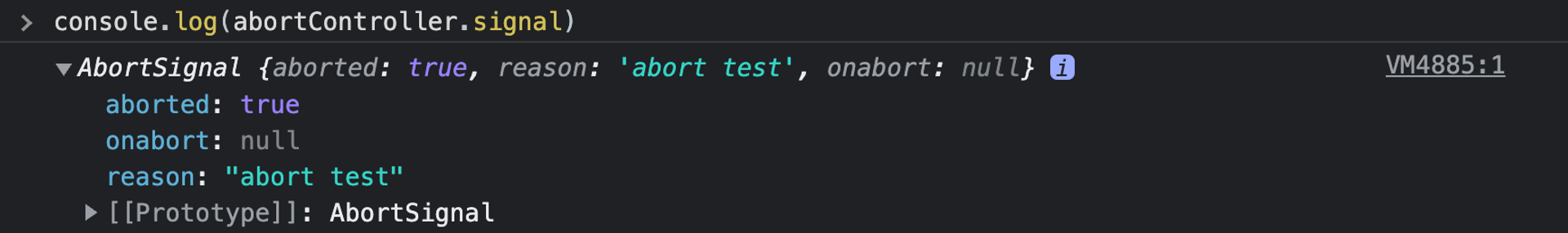 signal.addEventListener('abort', () => console.log('abort ์ด๋ฒคํธ ๋ฐ์!'));