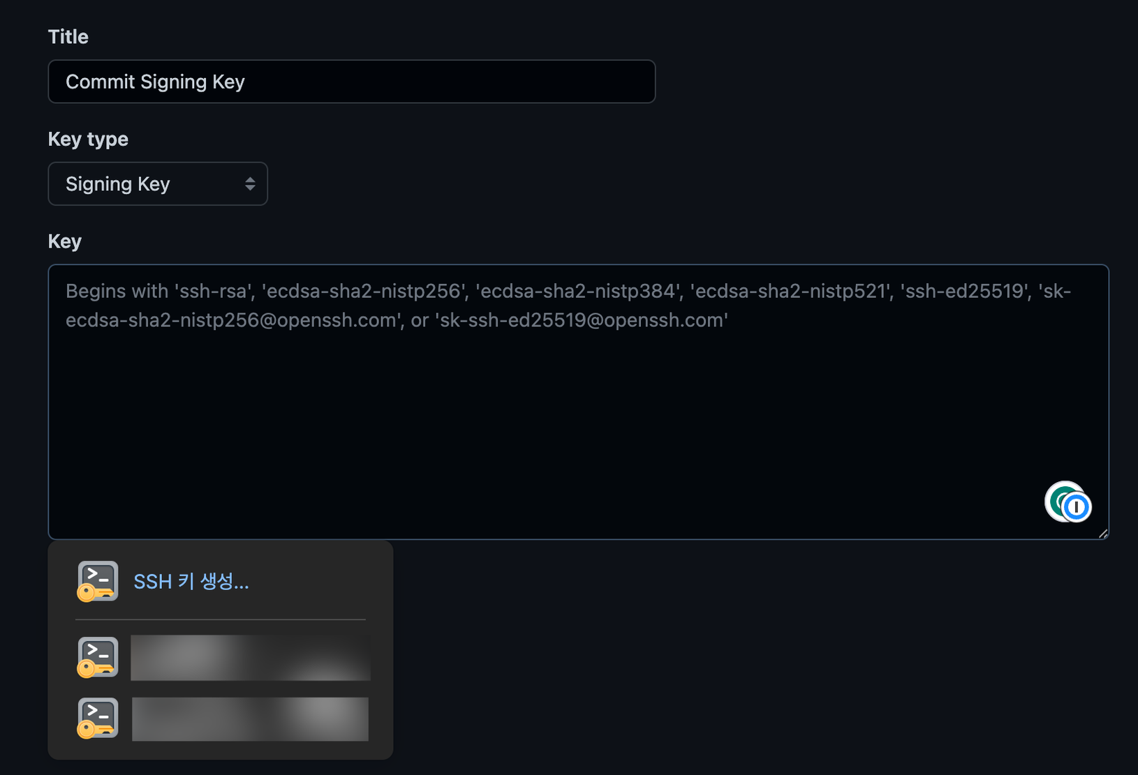 โธ GitHub Settings → SSH and GPG keys → Signing Key ํ์