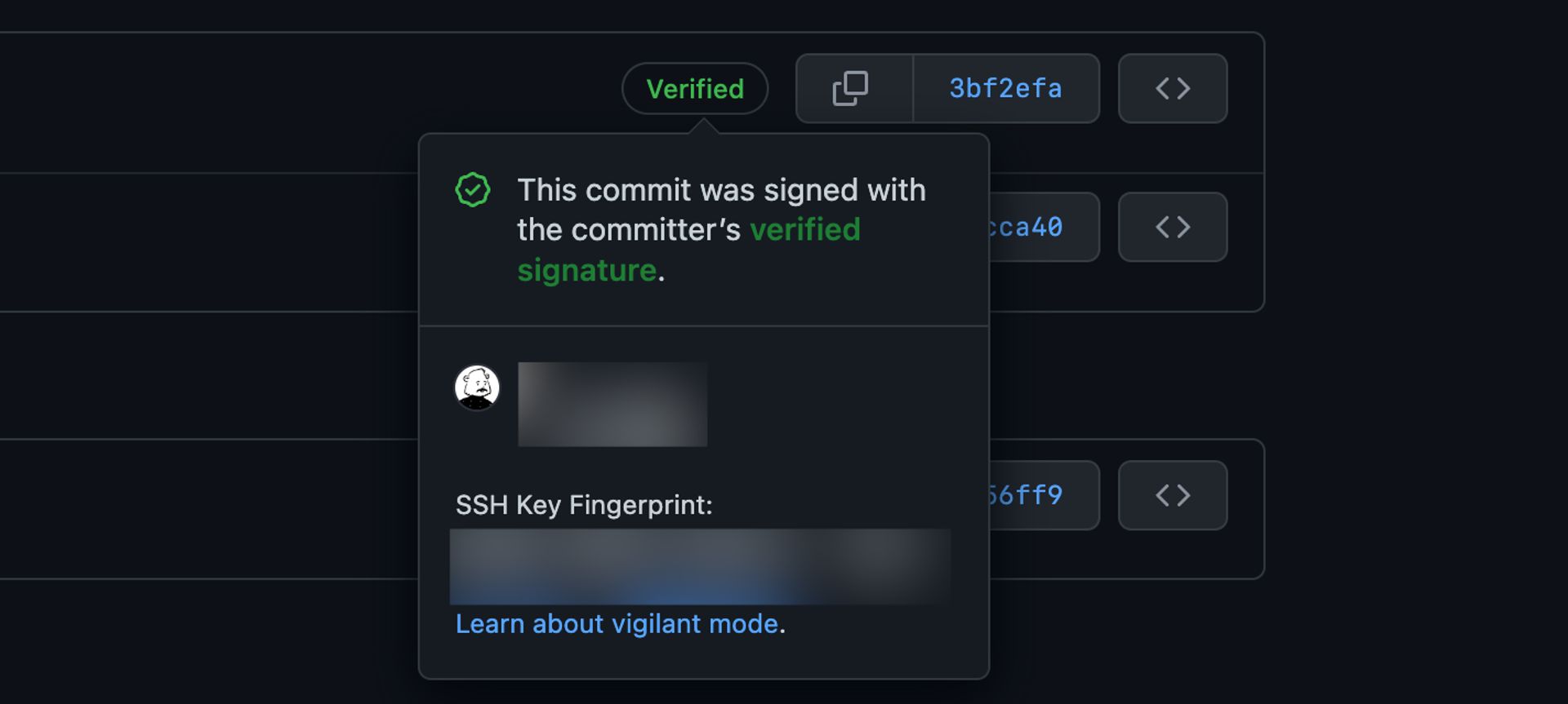 ๐ก ์ฒดํฌํ๋ฉด ๋ณธ์ธ ๊ณ์ ์ ๊ท์๋ ๋ชจ๋ ์ปค๋ฐ๊ณผ ํ๊ทธ์ ์๋ช ์ํ(Verified / Unverified)๋ฅผ ํ์ํ๋ค