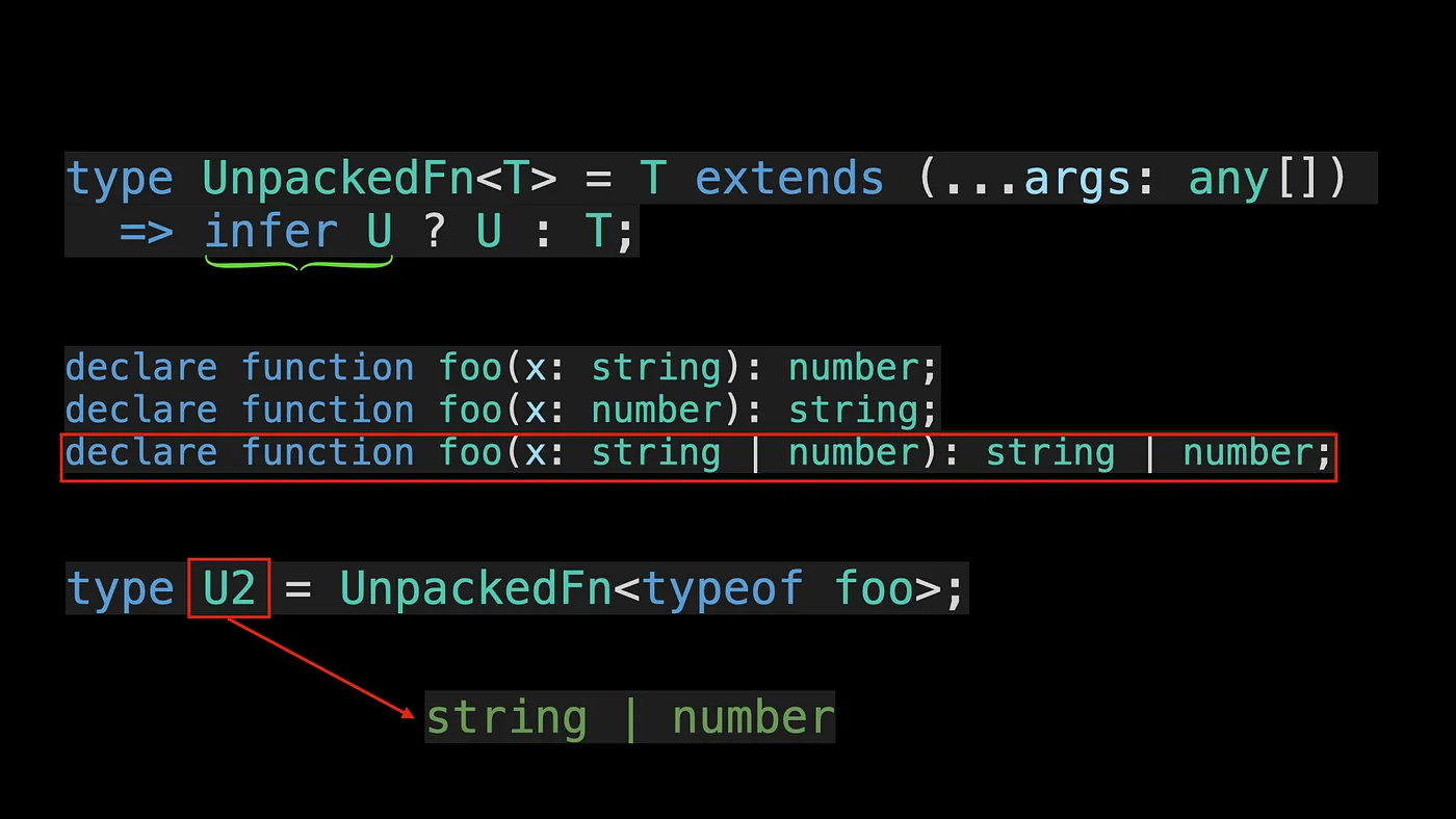 type U2 = UnpackedFn<typeof foo>; // string | number