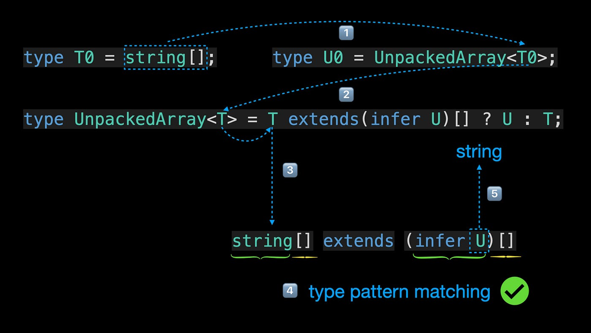 Explained with animations. Master TypeScript Conditional Types and infer type inference.