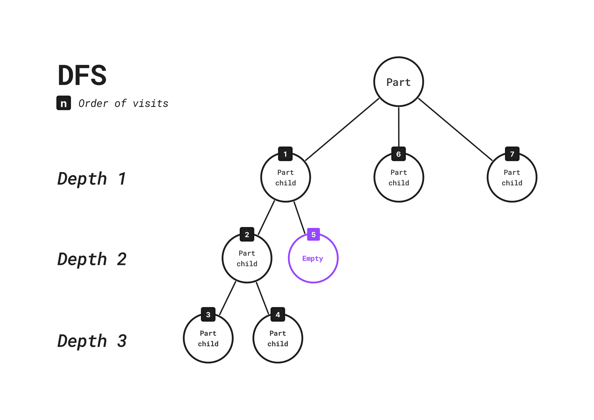 ธ๋๋ฅผ ๋ฐฉ๋ฌธํด์ ํ์ธํด์ผ ํ๋ฏ๋ก DFS, BFS ์ด๋ค ๊ฒ์ ์ฌ์ฉํด๋ ๋ฌด๋ฐฉํ๋ค. part.child ๊ธธ์ด๊ฐ 1 ์ด์์ด๋ฉด ์ฌ์ฉํ๋ part๋ก ํ๋จํ๋ฏ๋ก, ๊ฐ์ฅ ๊น์ ๋
