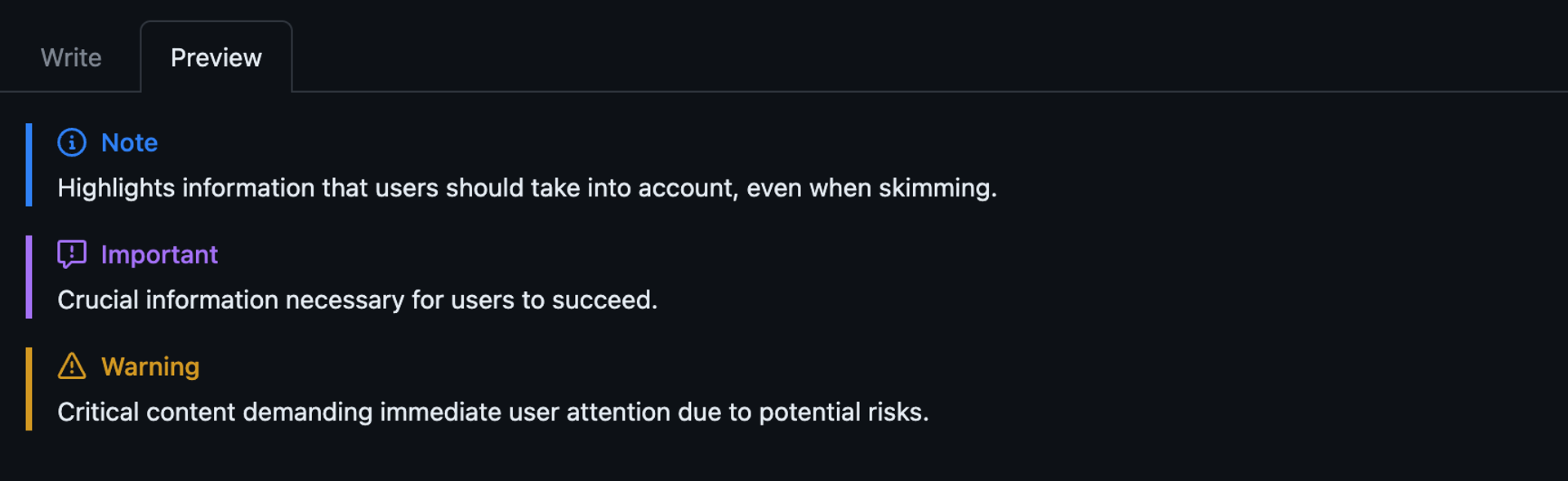 > Highlights information that users should take into account, even when skimming.