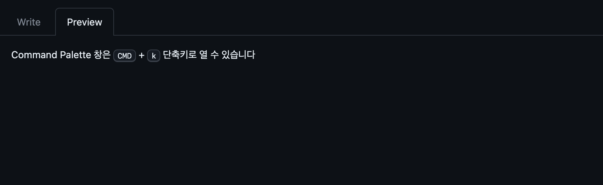 Command Palette ์ฐฝ์ <kbd>CMD</kbd> + <kbd>k</kbd> ๋จ์ถํค๋ก ์ด ์ ์์ต๋๋ค