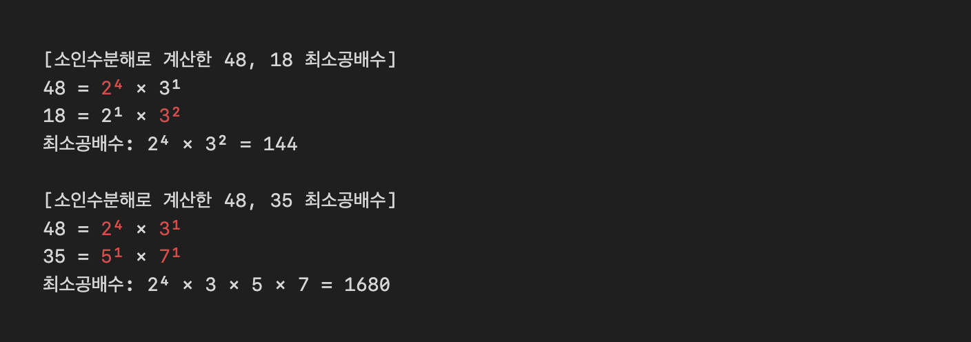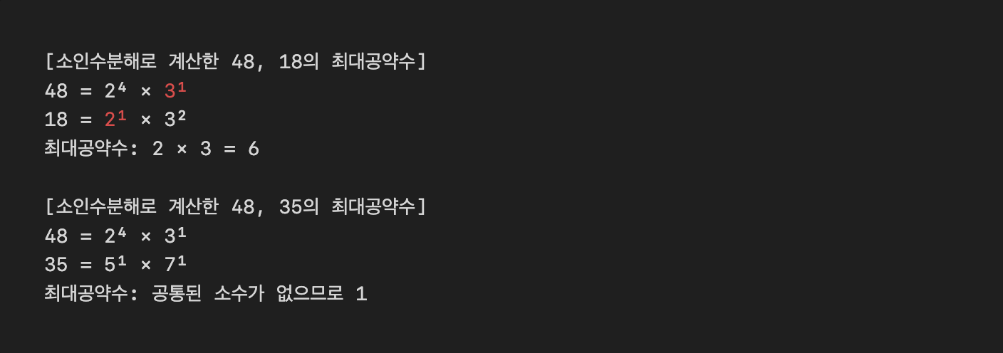 ์์ธ์๋ถํด ๊ฒฐ๊ณผ๋ฅผ ํ์ฉํ๋ฉด ์ต๋๊ณต์ฝ์(GCD)์ ์ต์๊ณต๋ฐฐ์(LCM)๋ฅผ ์ฝ๊ฒ ์ฐพ์ ์ ์๋ค.
