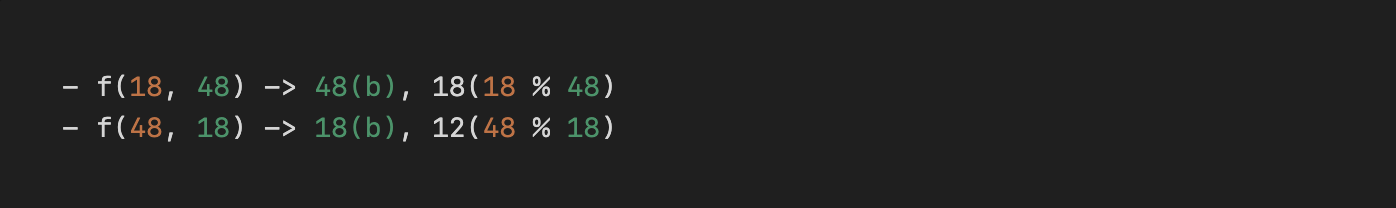 gcd(48, 18); // 6