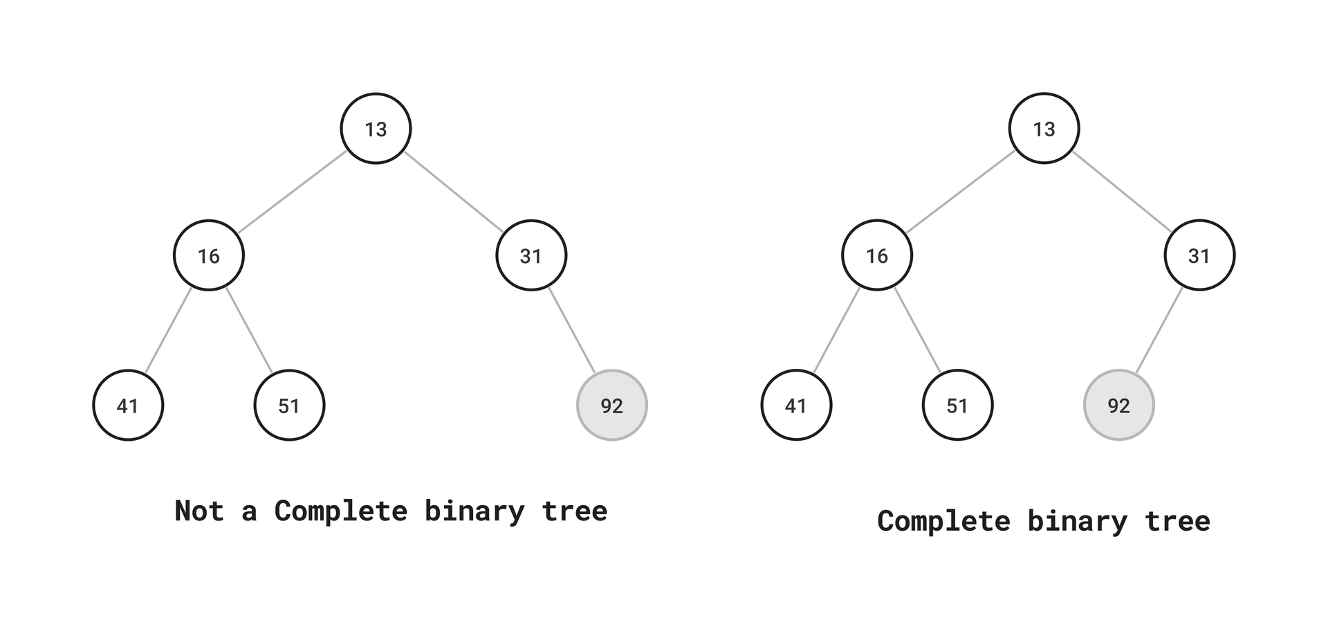 ์ด์ง ํธ๋ฆฌ๋ ๊ฐ ๋ถ๋ชจ ๋ ธ๋๊ฐ ์ผ์ชฝ/์ค๋ฅธ์ชฝ ์ต๋ 2๊ฐ์ ์์ ๋ ธ๋๋ฅผ ๊ฐ์ง ์ ์๋ ๊ตฌ์กฐ๋ฅผ ๊ฐ๋ฆฌํจ๋ค. ์์ ์ด์ง ํธ๋ฆฌ๋ ๋ง์ง๋ง ๋ ๋ฒจ์ ์ ์ธํ ๋ชจ๋ ๋ ๋ฒจ์ ์์ ํ ์ฑ์์ง ์ํ๋ก ์ ์งํด์ผ ํ๋ค. ๋๋ฌธ์ ์์ ๋ ธ๋๋ฅผ ์ถ๊ฐํ ๋ ์ผ์ชฝ๋ถํฐ ์ฐจ๋ก๋๋ก ์ฑ์์ผ ํ๋ค. ์๋ ์ด๋ฏธ์ง ์ผ์ชฝ์ ์๋ ํธ๋ฆฌ๋ 31๋ฒ ๋ ธ๋์ ์์์ ์ค๋ฅธ์ชฝ๋ถํฐ ์ฑ์ ๊ธฐ ๋๋ฌธ์ ์์ ์ด์ง ํธ๋ฆฌ๊ฐ ์๋๋ค.