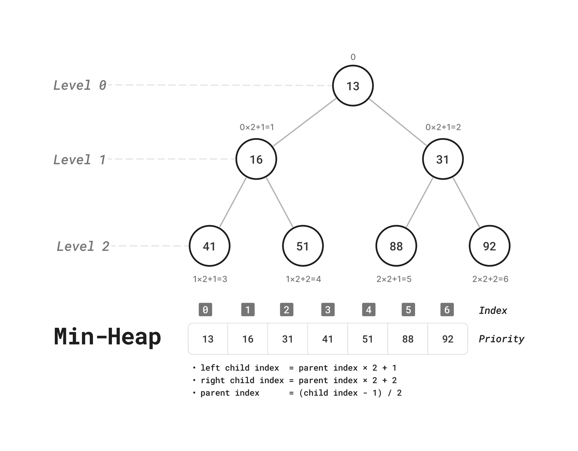 - ์ค๋ฅธ์ชฝ ์์ ๋ ธ๋ ์ธ๋ฑ์ค : ๋ถ๋ชจ ๋ ธ๋ ์ธ๋ฑ์ค × 2 + 2