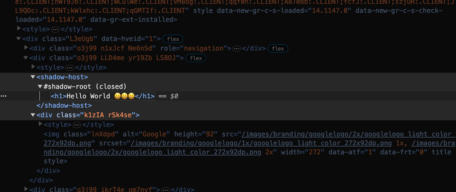 ์์์ ์์ฑํ Shadow DOM ๋ ๋๋ฌ๋ฅผ ํ์ฉํด ๊ตฌ๊ธ ์ฒซ ํ์ด์ง์ ์ฝ์