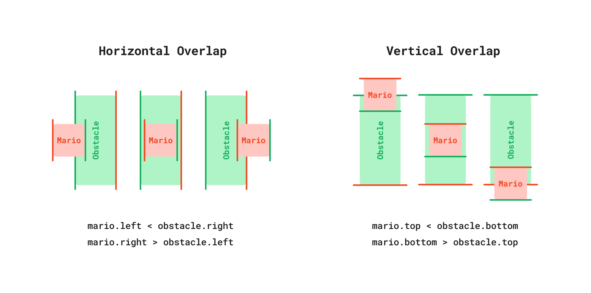 marioRect.right > obstacleRect.left; // ๋ง๋ฆฌ์ค๊ฐ ์ฅ์ ๋ฌผ ์ผ์ชฝ์์ ๊ฒน์น๋ ๊ฒฝ์ฐ ๊ฒ์ฌ
