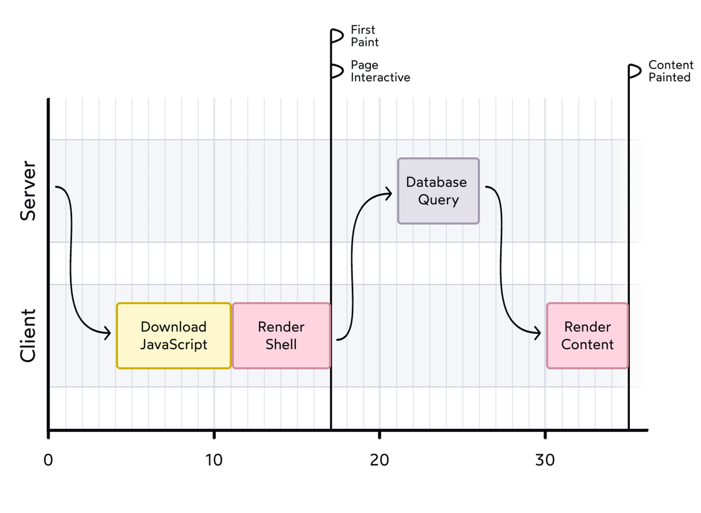 ํ์ด์ง ๋ผ์ฐํฐ๋ฅผ ์ฌ์ฉํด๋ ์๋ฒ์์ ์ฝํ ์ธ ๋ฅผ ๋ฏธ๋ฆฌ ๋ค์ด๋ก๋ํ๊ณ HTML์ ์์ฑํ ์ ์์ง๋ง, ์ปดํฌ๋ํธ ํธ๋ฆฌ ๊ฐ์ฅ ์๋จ์ ์๋ ๋ผ์ฐํธ ๋ ๋ฒจ์์๋ง ์๋ํ๋ ๋จ์ ์ด ์์ผ๋ฉฐ ์ด๋ฅผ Pre-RSC๋ผ๊ณ ๋ ๋ถ๋ฅธ๋ค. ์๋ ์ด๋ฏธ์ง๋ ๊ธฐ๋ณธ SSR ๋ ๋๋ง ํ๋ก์ฐ. CSR์ ๋นํด First Paint๊ฐ ๋นจ๋ผ์ง๋ ์ฅ์ ์ด ์๋ค.