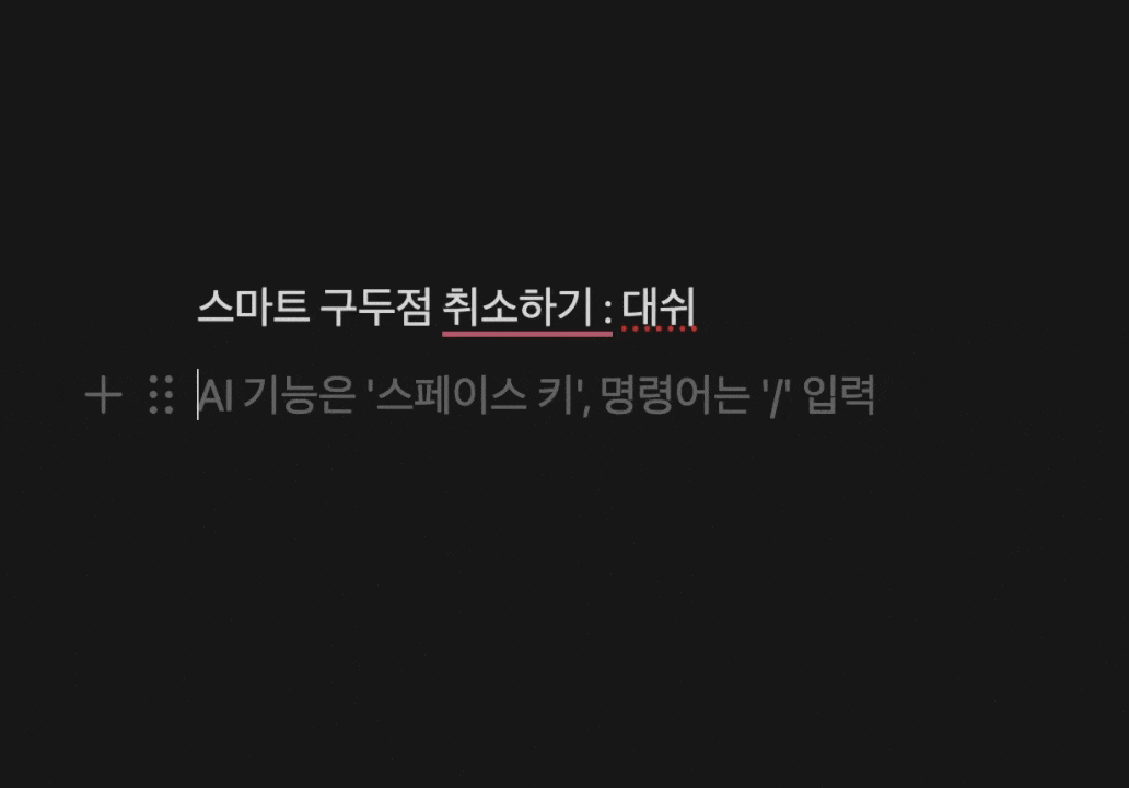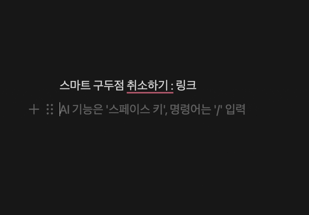 노션에서 직선 인용 부호를 입력할 수 있는 방법이 아예 없는 건 아니다. CMD(Ctrl) + Z 실행 취소 단축키를 활용하면 인용 부호, 대시는 물론 자동 변환된 모든 형태의 문자를 원래대로 되돌릴 수 있다.