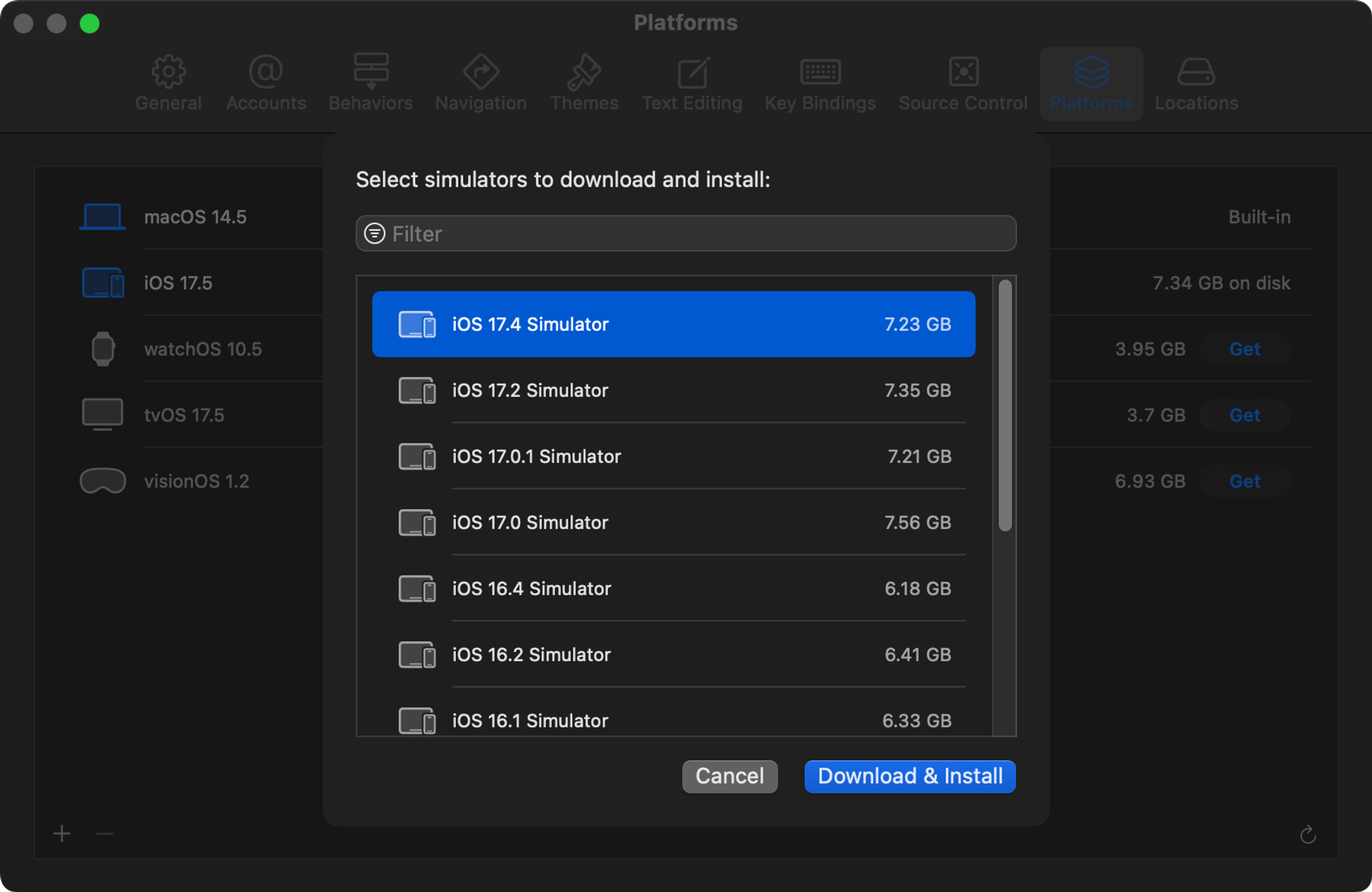 โท iOS ๋ฒ์ ์ ๋ฐ๊พธ๊ณ ์ถ์ผ๋ฉด xCode ์คํ - Preference(โ ,) - Platforms ํญ - ์ข์ธก ํ๋จ + ๋ฒํผ ํด๋ฆญ - iOS ์ ํ ํ ์ํ๋ ๋ฒ์ ์ ์ค์นํ ์ ์๋ค.