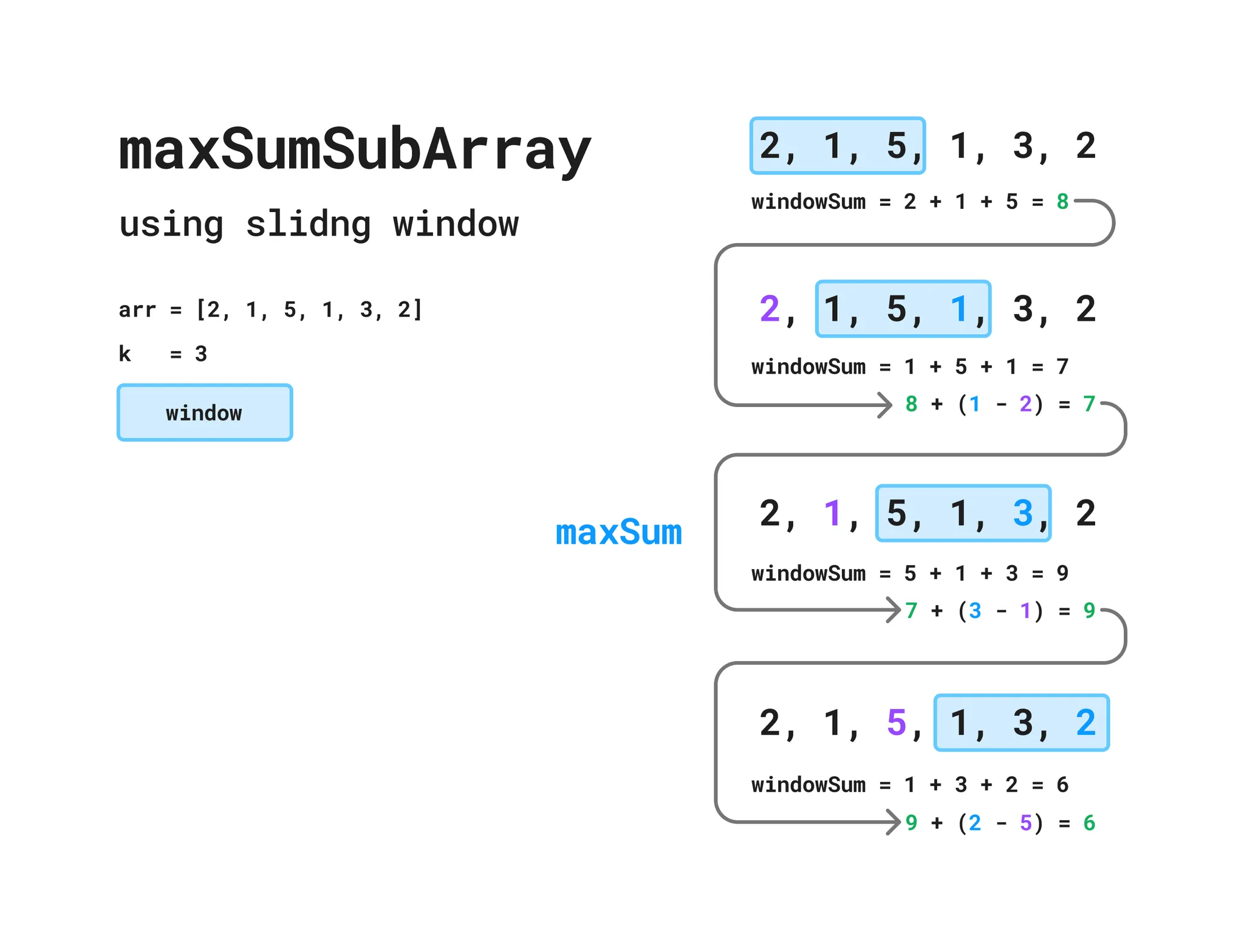 maxSum = Math.max(maxSum, windowSum);
