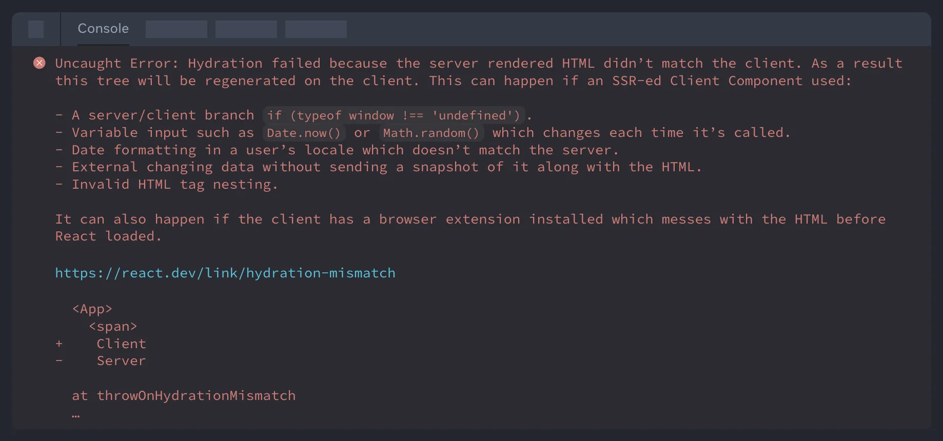 ๋ํ createRoot, hydrateRoot ๋ฃจํธ ์์ฑ ํจ์์ ์๋ก์ด ์๋ฌ ๊ด๋ จ ์ต์ ์ด ์ถ๊ฐ๋๋ค.