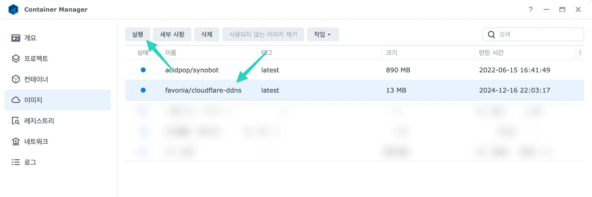 ③ 좌측 "이미지" 메뉴 클릭 - 목록에서 favonia/cloudflare-ddns