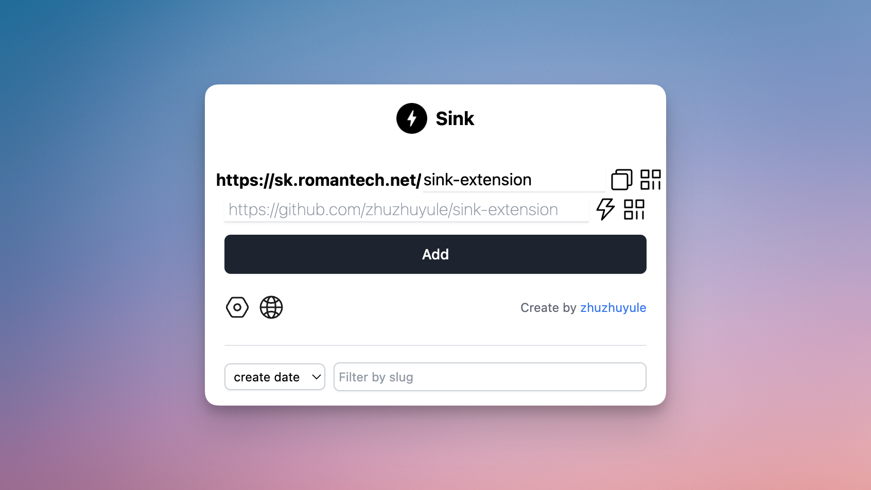 크롬 Sink 확장 프로그램을 이용하면 현재 페이지 URL에 대한 단축 주소를 생성할 수 있다. 페이지에 대한 Slug를 추천하거나, QR 코드 이미지를 생성할 수도 있다. 아직 크롬 웹 스토어에는 올라가 있지 않아서 아래 방법으로 수동 설치해야 한다.