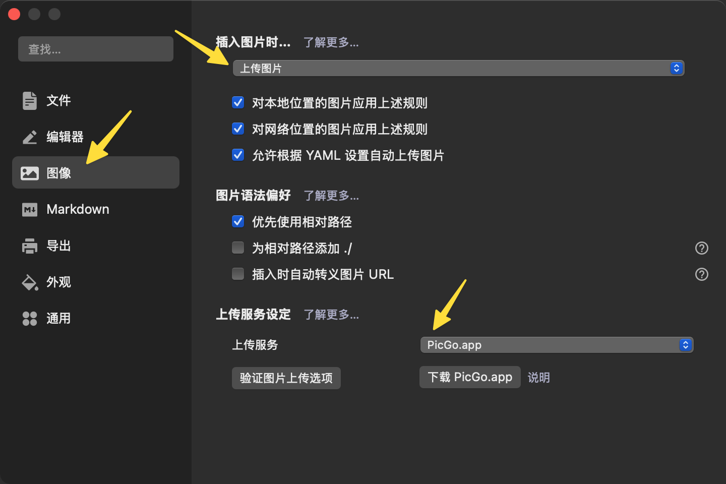 - 上传服务 (이미지 업로더): PicGo.app 선택
