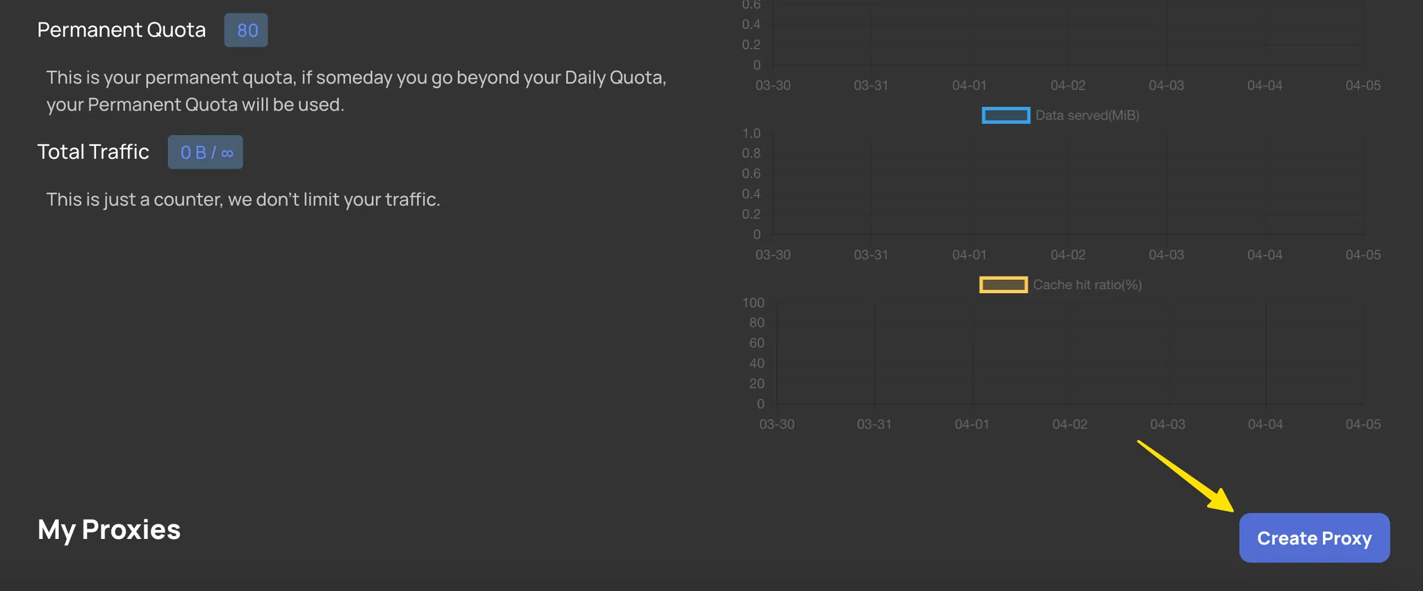 ① WebP Cloud 로그인 후 Create Proxy 버튼 클릭