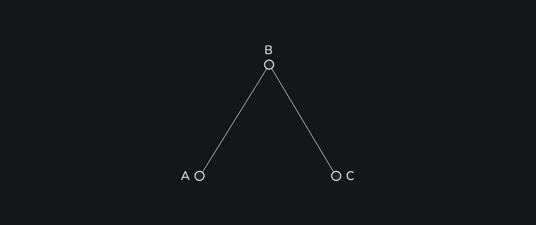 ๋จผ์ A, B, C ์กฐ์ ์ 3๊ฐ๋ฅผ ์ง์ ์ผ๋ก ์๋๋ค. ๊ทธ๋ผ AB, BC 2๊ฐ์ ์ ๋ถ์ด ์๊ธด๋ค.