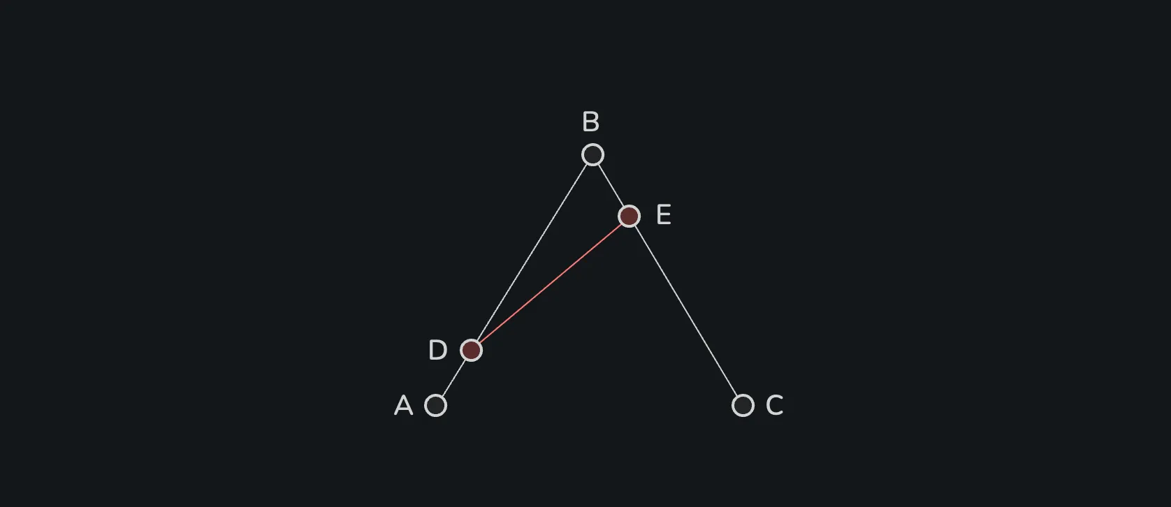 ๊ฐ ์ ๋ถ์ ๋์ผํ ๋น์จ t(0 ≤ t ≤ 1)๋ก ๋๋๋ค(๋ด๋ถ). ์๋ฅผ ๋ค์ด t๊ฐ 0.3์ด๋ผ๋ฉด A์์ B ๋ฐฉํฅ์ผ๋ก 30% ์ด๋ํ ์ง์ D์, B์์ C ๋ฐฉํฅ์ผ๋ก 30% ์ด๋ํ ์ง์ E๊ฐ ๋ง๋ค์ด์ง๋ค.