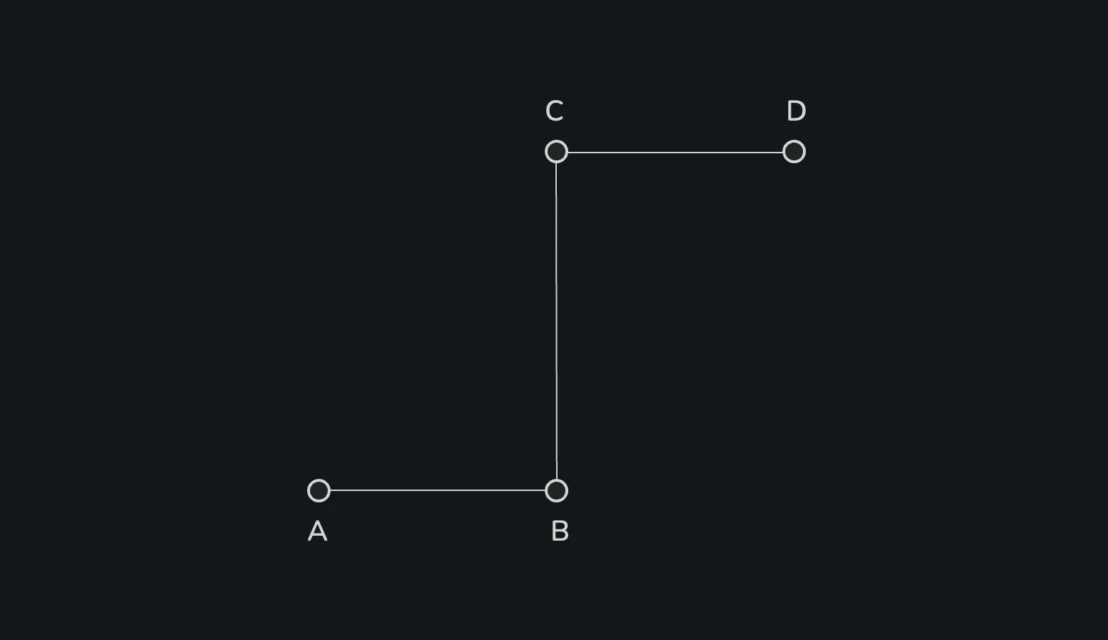 ๋จผ์ A, B, C ์กฐ์ ์ 3๊ฐ๋ฅผ ์ง์ ์ผ๋ก ์๋๋ค. ๊ทธ๋ผ AB, BC 2๊ฐ์ ์ ๋ถ์ด ์๊ธด๋ค.