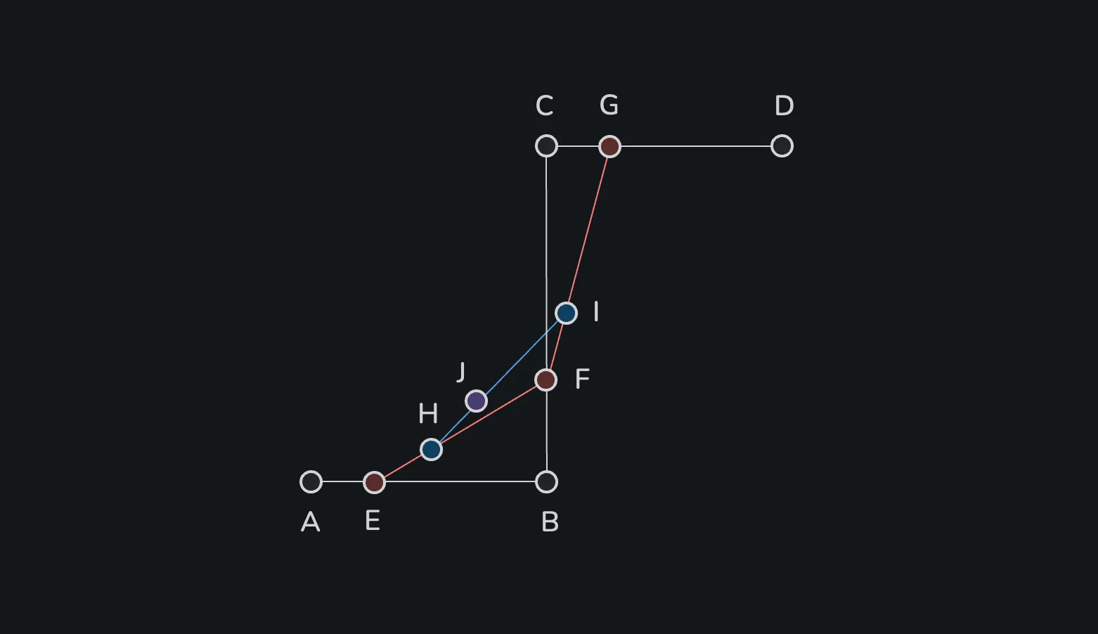 ์๋ก์ด ์ ๋ถ์ ๋ค์ t๋ก ๋ด๋ถํ์ฌ ์ H, I๋ฅผ ๋ง๋ ๋ค.