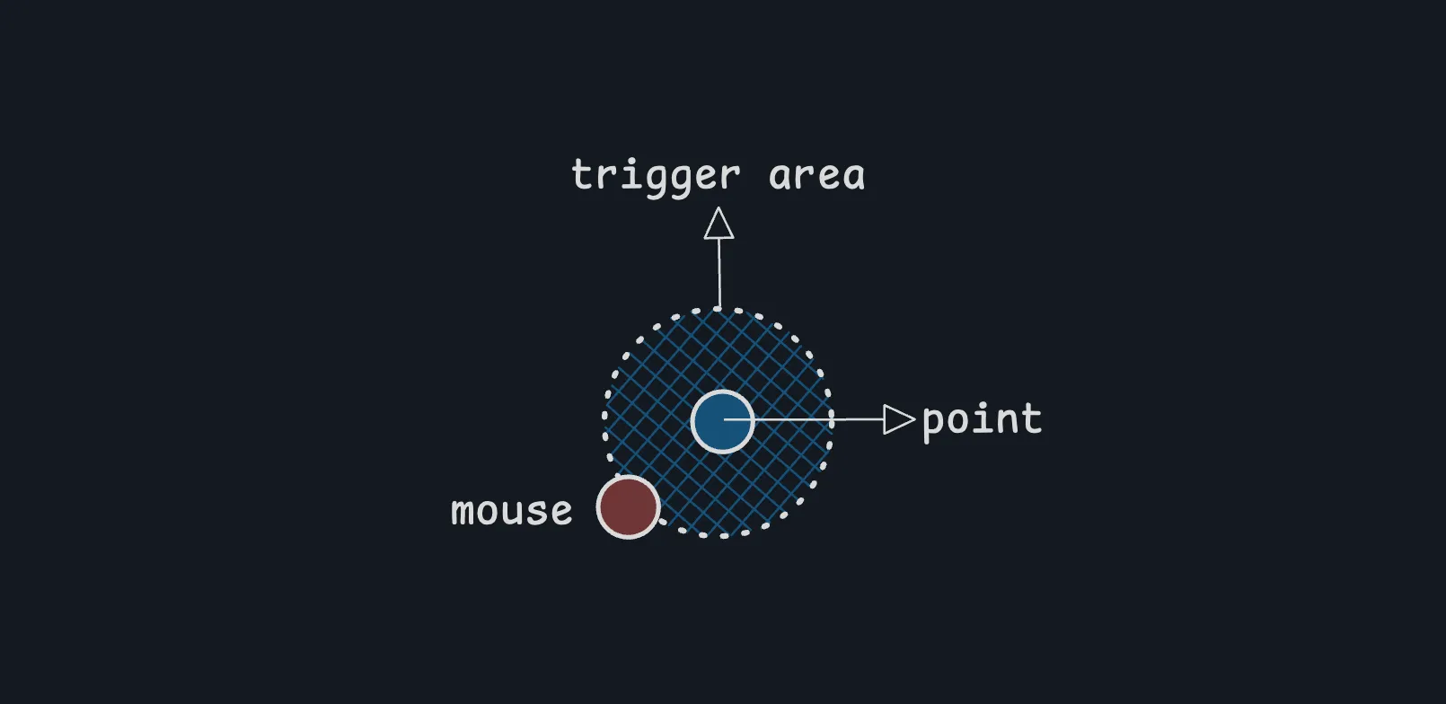 // ํผํ๊ณ ๋ผ์ค ์ ๋ฆฌ๋ฅผ ์ด์ฉํด point์ mouse ์ฌ์ด์ ๊ฑฐ๋ฆฌ(๋น๋ณ) ๊ณ์ฐ