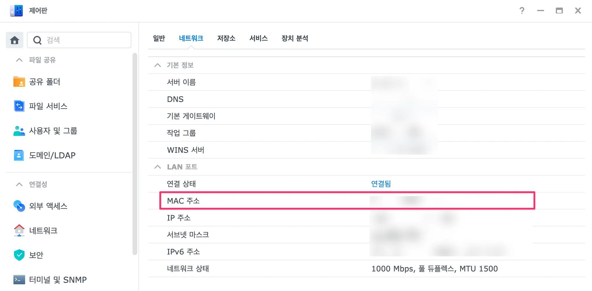 나스 설정 (시놀로지 기준)