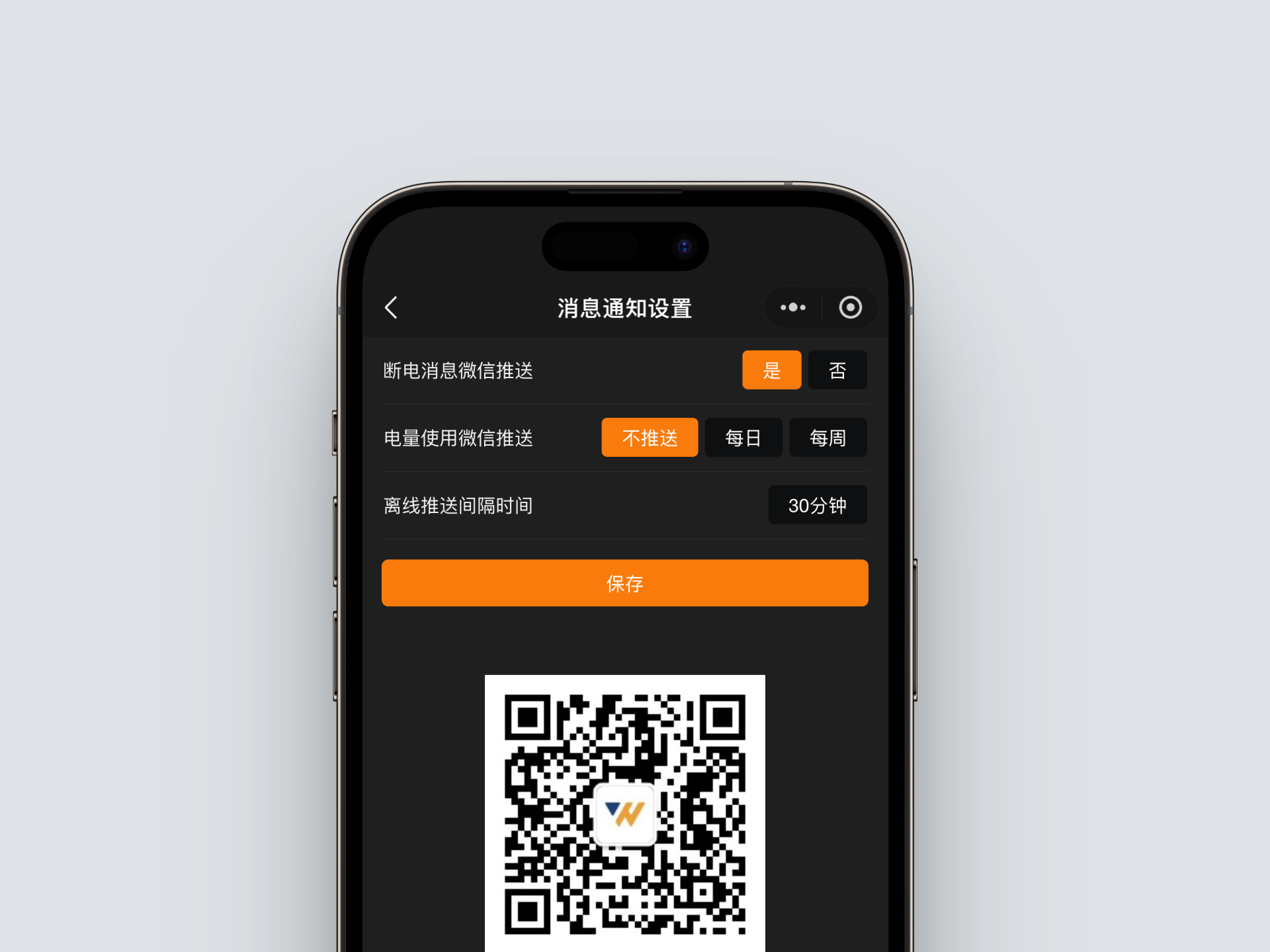 - 断电消息微信推送: 배터리 모드 전환 시(정전 발생) 위챗 공식 계정을 통해 알림